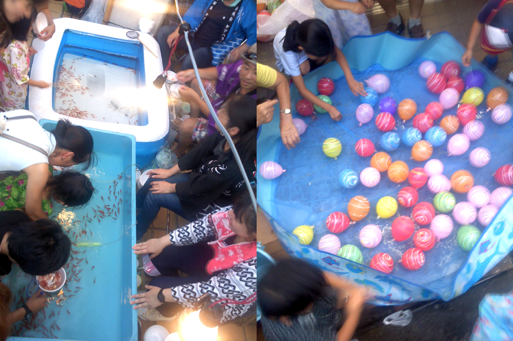コマ回しや折り紙なんて、あまり『祭り』では見かけないものだけど。
