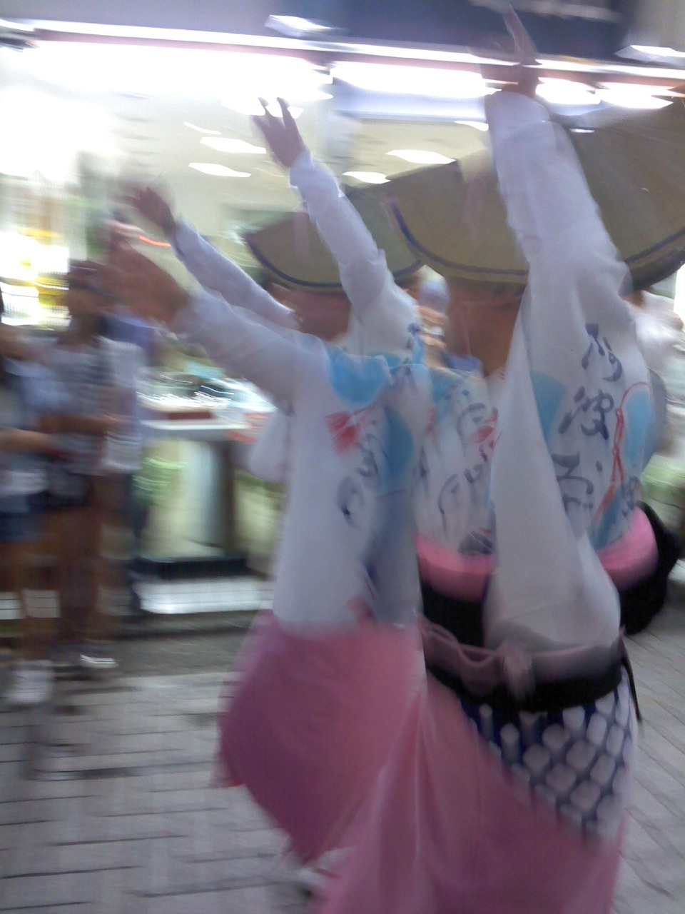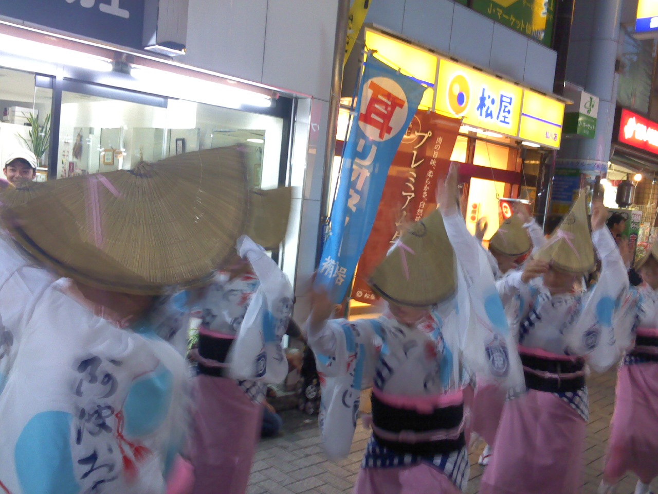 町にはいくつもの会場があって、通りでもパレードや阿波踊り。