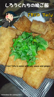 豆腐の水分をよく切って、油で素揚げにするだけね。