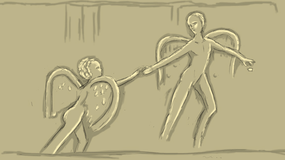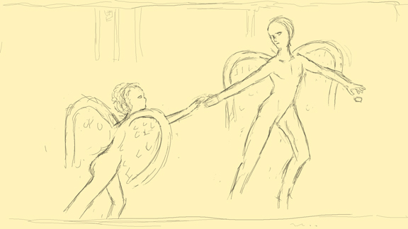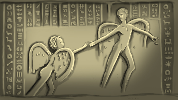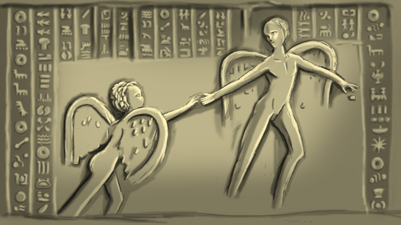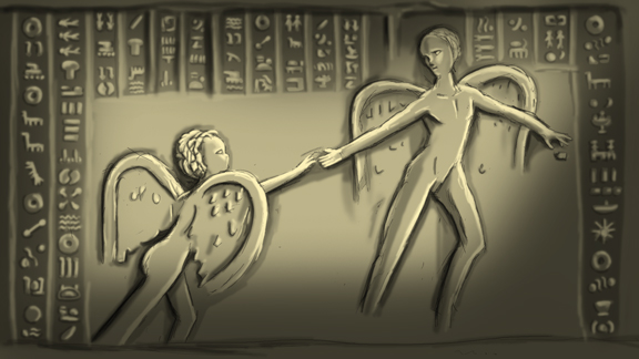 『しかし記憶の底で呼びかける。我々は覚えている。母の胎内にいたころの物語を。それは壮大な物語。今宵我々は月の夜に集いその物語を語り継ぐのだ。人は目覚めた時、何も持たずに生まれいでる。それは彼ら、つまり我々の始祖とて同じ事。手に握るは母親の愛のみ。名前すら持たずに生まれて来るのだ。今宵我々は仮に彼らの名前をアダムとイヴと呼ぶ事にしよう。。。。。』