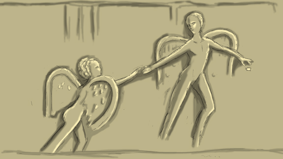 仕上げにレリーフ全体にかかる影。