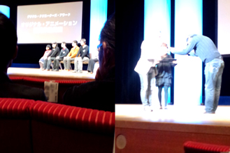 交流会で大地監督と神谷明さんと笑談した。