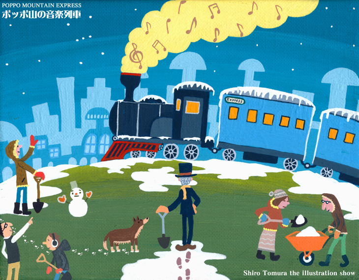 ポッポ山の郊外ではみんなで雪かきが行われていました。
