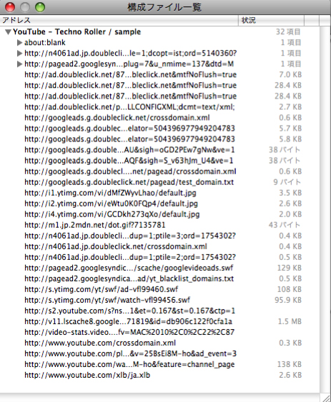 方法としては(他のサイトで読んだ記事によると)、拡張子が『flv』のもの、または文字列に『get.video』という記述があるものが該当のソフトとあったけど、まあ簡単に言えばこの中で一番ファイルサイズの大きいものが、いわゆる変換された『flv』ファイルだと思ってほぼ間違いないのではないだろうか。