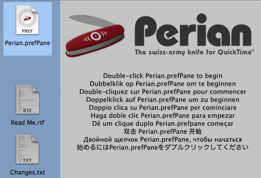 (2)開くと下の写真のようになるので、『Perian.prefPane』を開いてインストール。