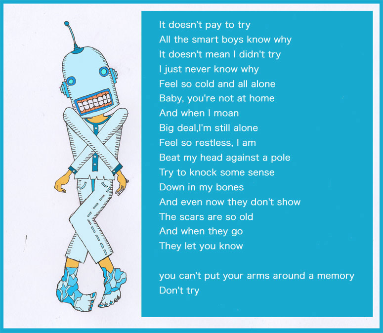 Let's put a new coat of paint on this lonesome ol' town. Set 'em up we'll be knockin 'em down. You wear adress baby,I'll wear a tie. We'll laugh at that ol' bloodshot moon In that burgundy sky(TOM WAITS).