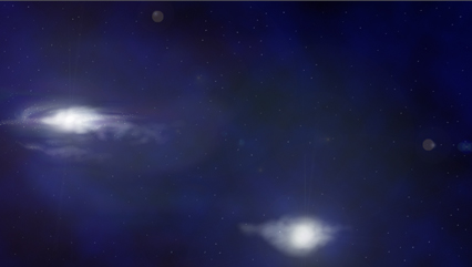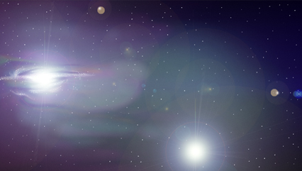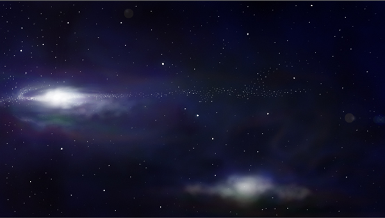 ■2)照明効果の逆光を利用して、銀河中心部の光を大げさなくらいに加えました。