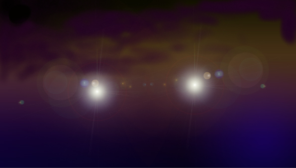 ■バックはエアブラシで大雑把に(出だしは2、3分程度描けば十分)。出来たベースの上にPhotoshop>フィルタ>表現手法>描画>逆光で光を落とす。※今回の場合は2個落とした。