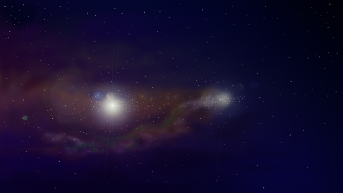 ■ホワイトで微調整。雲のイメージをより鮮明にして、銀河(星雲?)中央の光源もより明るくなった。最後に星を描画。