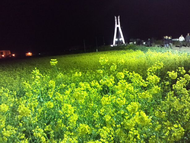 一面に広がる菜の花畑も、夜に見るとこんなに幻想的。