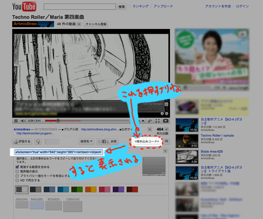 このコードを使って、ブログやウェブサイト、掲示板に貼ったりするのはやった事あるでしょう?
