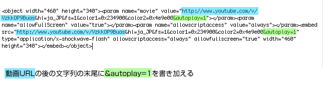 んで、脱線したけど、この『貼付けコード』を使って、動画を自動再生させることもできるわけです。