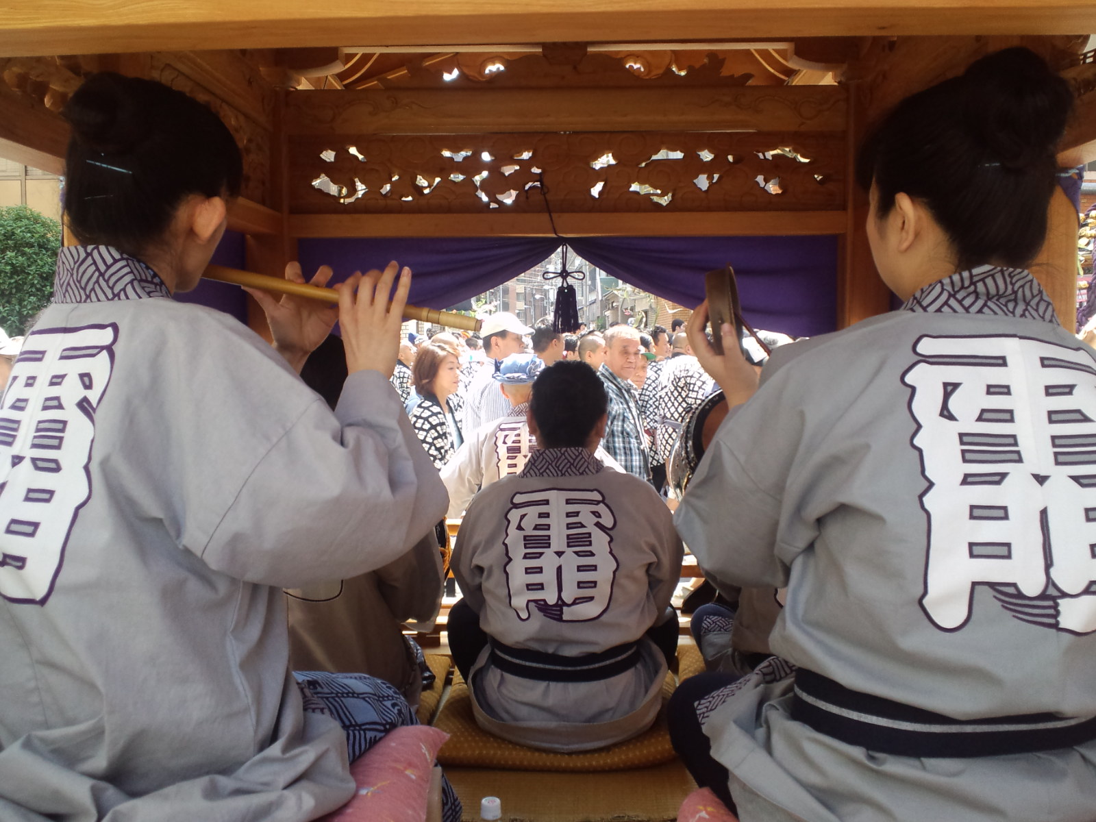人をかき分け足を踏みつつ踏まれ、やっとの事で囃子連の山車まで辿り着いた。