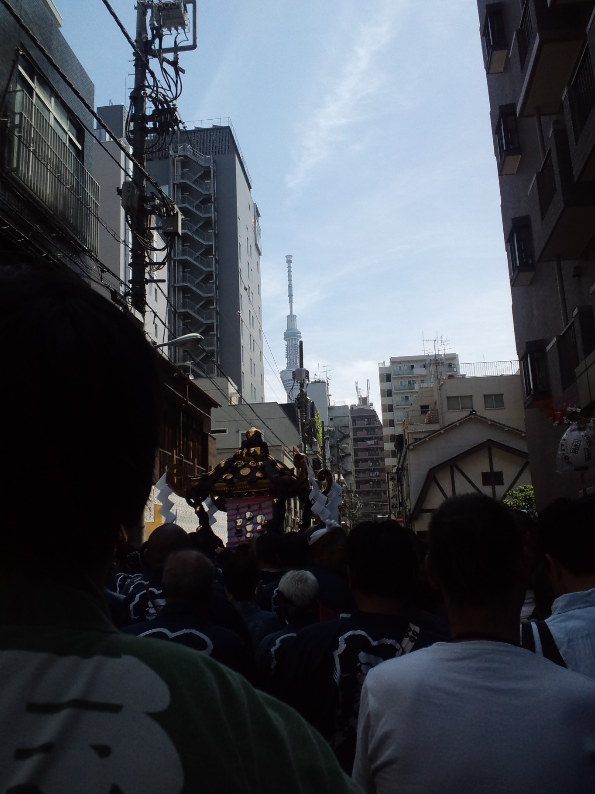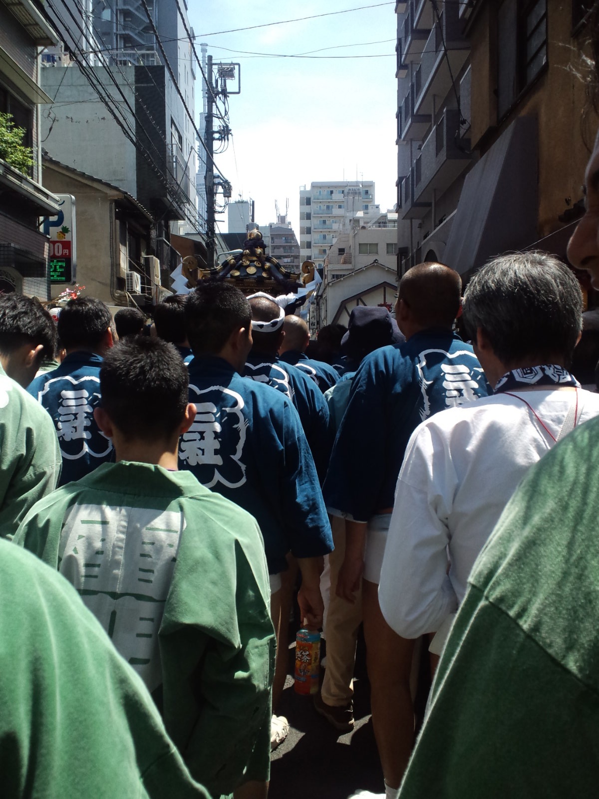 ということで、ぼくらは行列のちょうど御神輿と囃子の山車車の間を、練り歩くことになった。