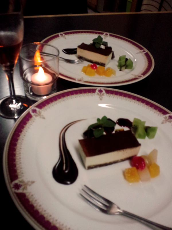 結婚記念日ということを予約の際電話で伝えていたら、スパークリングワインとケーキのサプライズを頂いた。
