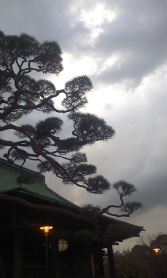 護国寺境内に多い松のフォルムを見ているとまるで浮世絵の中に吸い込まれて行くようだ。