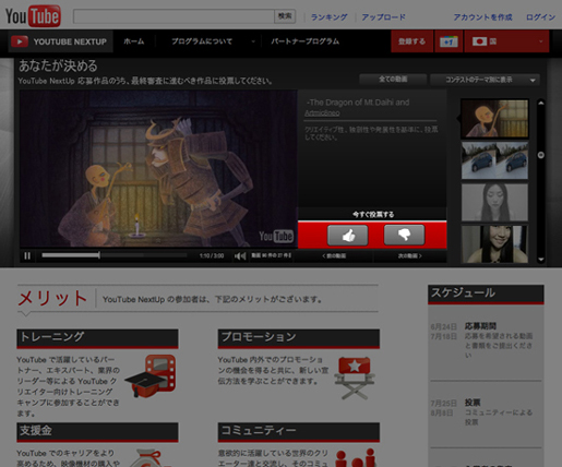 YouTubeのNextUpが本日25日より投票開始で8月8日まで行われます。