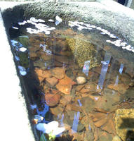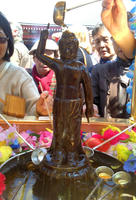 お釈迦様の頭から『甘茶をかける』とは言ったものの、四方八方から伸びてくる柄杓は時折ぶつかり、お釈迦様の頭やら手やら肩を打つ(笑)。