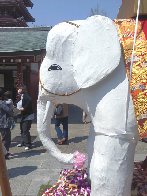 さっきの象はお釈迦様を乗せて仲店通りを子どもたちと練り歩き。